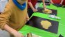 Trotz des engen Raums und den faszinierenden Ausstellungsstücken gelang es unserer Klasse aber tatsächlich, den Alarm nicht auszulösen – ein echtes Highlight für die Kinder. Der nächste Höhepunkt folgte umgehend, als wir gemeinsam in die, dem Museum zugehörige, Werkstatt gingen. Dort konnten die Kinder „Der charismatische Ort Adlerscheibenfibel“ von Kaiserin Agnes (980 – 1000 n.Chr.) drucken und Originalgetreu nachgestalten. Zunächst wurde mit einer Rolle goldene Farbe auf die Druckvorlage aufgetragen, dann das Blatt aufgelegt und mit einer Art Stempel festgedrückt. Nach dem Trocknen wurde das Bild dann noch mit Buntstiften verschönert und stolz mit nach Hause genommen.